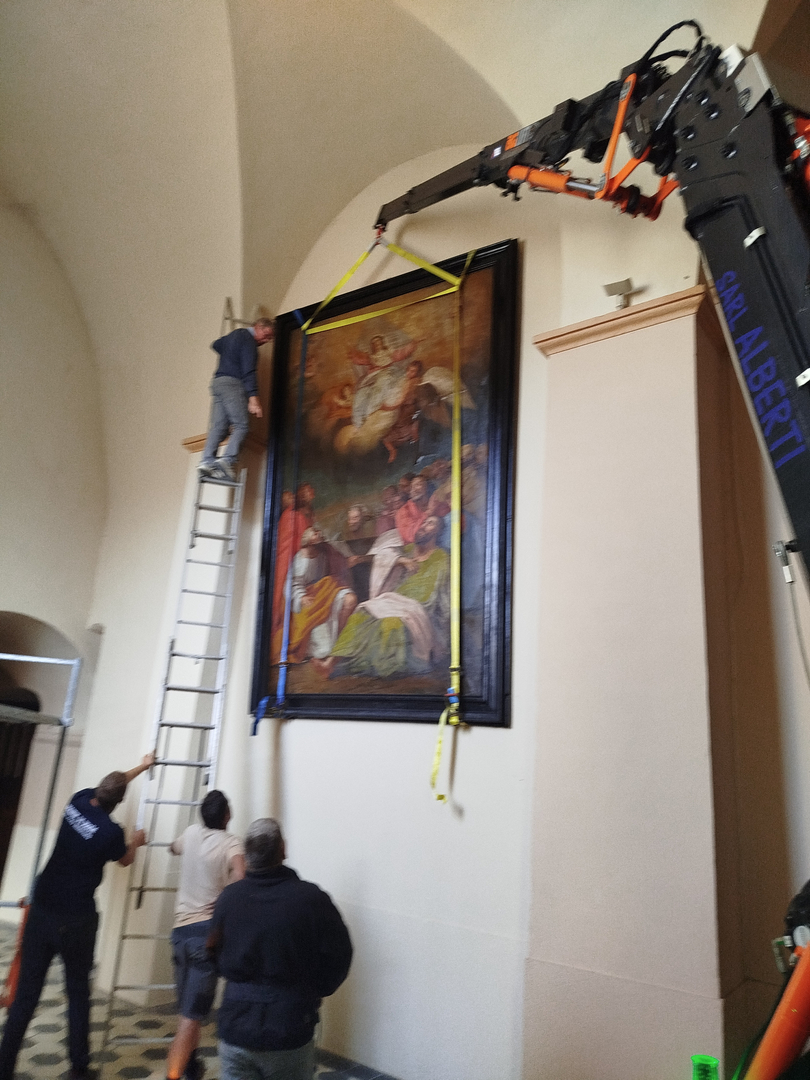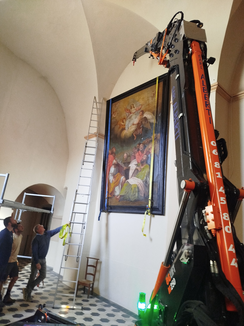 Restauration d'un tableau à l'église de Vogüé par l'atelier ROJON du Teil